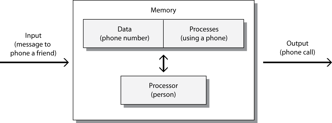 An organization’s memory comes in a variety of forms, as you will see in Chapter 1. This memory also can be divided into data and processes. The data part may contain information about customers. The process portion may store details of how to handle a customer order. Organizations use a variety of processors to handle data, including people and computers. Organizations also rely on external sources to extend their information processing capacity. For example, a business may use a specialist credit agency to check a customer’s creditworthiness, or an engineering firm may use a cloud computing service for structural analysis of a bridge. Viewed this way, the augmented human information processing model becomes a pattern for an organizational information processing system.